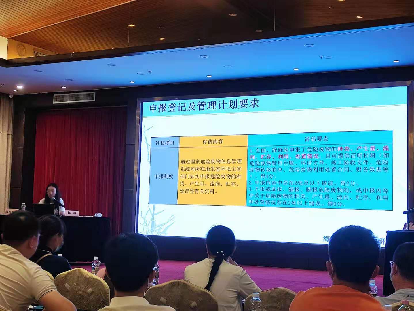 楊瑞工程師詳細地講解了危險廢物日常管理要點,向大家展示了固廢法歷年的變更及修訂,同時講授了海南省固體廢物管理信息系統用戶操作。